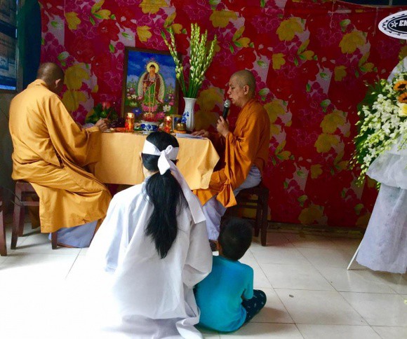 Cậu con trai đội tang tiễn cha về nơi an nghỉ.