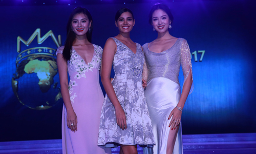 Từ trái qua: Vu Văn Hà (Miss World 2012), Stephanie Del Valle (Miss World 2016) và Trương Tử Lâm (Miss World 2007) tới dự đêm chung kết. Megan Young - Hoa hậu Thế giới 2013 - là một trong những người dẫn chương trình của sự kiện.