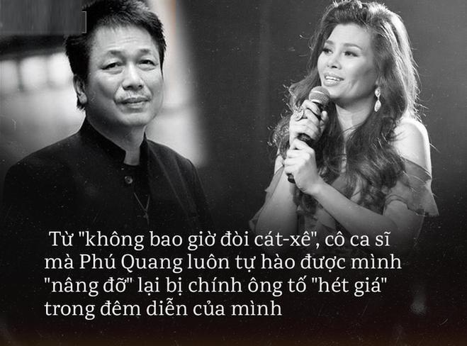Từ "không bao giờ đòi cát-xê", cô ca sĩ mà Phú Quang luôn tự hào được mình "nâng đỡ" lại bị chính ông tố "hét giá" trong đêm diễn của mình. Mức giá 10.000 đô có thể khiến nhiều người choáng váng, nhưng sự thay đổi nhanh tới ngỡ ngàng trong lời kể của vị nhạc sĩ tài hoa còn khiến người ta choáng váng hơn.