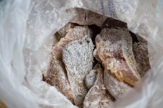 Cho cá và bột ngô vào một túi ni lông, lắc đều chừng 5 - 10 phút để bột bám hết vào phần cá.