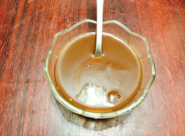 - Bước 4: Bạn cho nước cốt me vào bát con, thêm đường và nước sau đó khuấy đều cho đuuờng tan hết, chúng ta được hỗn hợp nước sốt me.