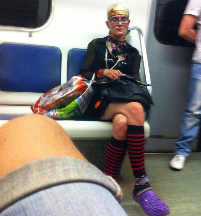 Nhà nhiếp ảnh đã sưu tầm những mốt thời trang khiến mọi người dở khóc dở cười. Ở nơi công cộng mà diện những bộ quần áo, phụ kiện "không giống ai". Bạn có thấy phì cười khi xem những bức hình này: