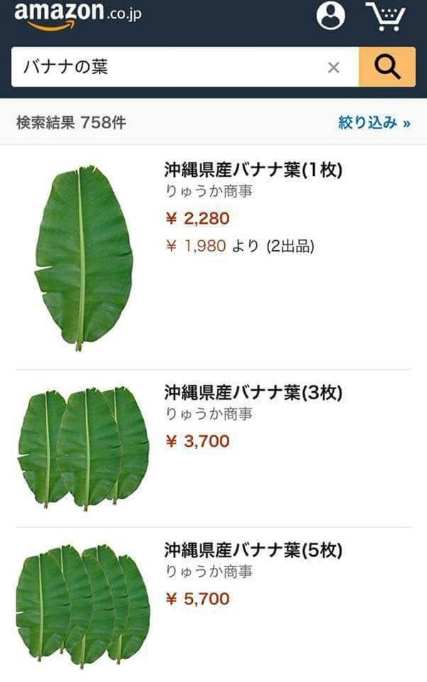 Cách đây một thời gian, trên trang mua bán Amazon Nhật Bản đang rao bán những chiếc lá chuối ‘made in Việt Nam’ với giá 2280 yên, tương đương 500.000 đồng, mua càng nhiều giá bán càng rẻ. Câu chuyện tưởng như đùa nhưng thực tế lại khiến cộng đồng mạng không khỏi ngạc nhiên, bàn tán xôn xao.