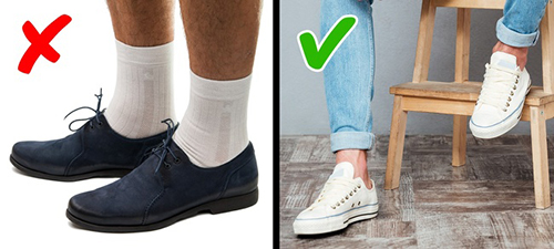 Điều kỵ nhất là bạn đi tất màu đen và giày màu trắng hoặc ngược lại. Sự đối lập giữa hai tông màu này khiến bạn hủy hoại hình ảnh thanh lịch của mình dù đồ có đắt tiền tới đâu. Bạn sẽ trông giống các cậu học sinh ngồi trên ghế nhà trường. Bởi vậy, hãy sáng tạo ra nhiều sự kết hợp màu sắc khác nhau nhưng tuyệt đối không được chọn sự đối lập hoàn toàn.