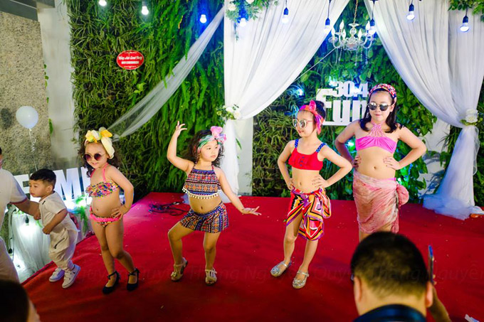 Dịp nghỉ lễ 30/4 năm nay, vợ chồng Jennifer Phạm không đi du lịch mà ở lại Hà Nội cùng nhóm bạn thân tổ chức một đêm tiệc, cho con cái tham gia nhiều hoạt động vui chơi như trình diễn thời trang, biểu diễn ca múa... Bé Na, con gái của Jennifer Phạm cũng là một trong những nhóc tỳ tích cực góp mặt.