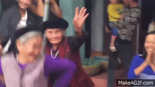 Nhảy cẫng, các bà các cô cũng không chịu kém ai. Các Cụ nhà ta vui quá.
