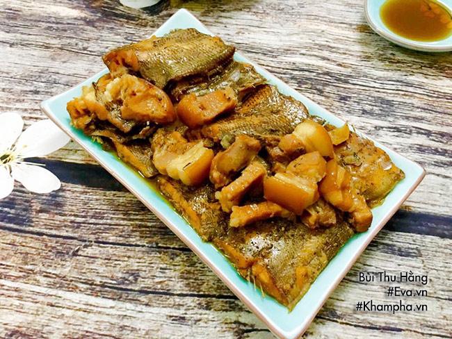 Xếp 1 lượt gừng thái lát xuống đáy tộ, 1 lượt thịt ba chỉ lên trên, sau đó xếp cá vào tộ rồi cho hỗn hợp nước hàng vào. Đun sôi và vặn nhỏ lửa liu riu cho cá ngấm. Được khoảng 20 phút thì nhẹ nhàng lật cá để mặt kia được ngấm gia vị. Khi nước cạn còn sanh sánh (kho cá khoảng 40 phút) thì rắc chút hạt tiêu, vài lát ớt rồi tắt bếp.