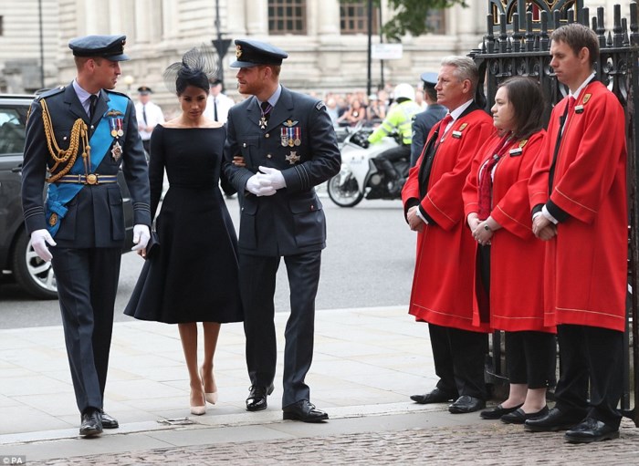 Mới đây, vợ chồng Công nương Meghan Markle và vợ chồng Công nương Kate Middleton đã có mặt tại Tu viện Westminster để tham gia buổi lễ kỷ niệm 100 năm Không quân Hoàng gia Anh. Trong khi Công nương Kate lựa chọn đầm xanh nhẹ nhàng thì Công nương Meghan lại gây chú ý khi mặc đầm tông đen.