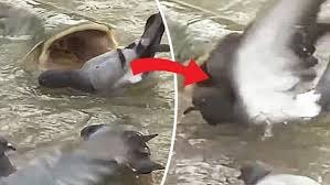 Cảnh tượng này đã được ghi lại khiến người xem không khỏi giật mình. Theo đó, con cá trê khổng lồ đã bất ngờ nhảy lên kéo chim bồ câu xuống nước. Nó vô cùng nhanh nhẹn khiến chim bồ câu không kịp phản kháng.