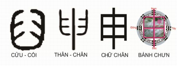 Hà Đồ – Lạc Thư , 10 thiên can: Giáp, Ất, Bính, Đinh, Mậu, Kỷ, Canh, Tân, Nhâm, Quý. 12 địa chi: Tý, Sửu, Dần, Mão, Thìn, Tỵ, Ngọ, Mùi, Thân, Dậu, Tuất, Hợi, còn chữ vuông thì có chữ Hiếu孝, Cô孤, trong chữ Hiếu孝, Cô孤 có chữ Tử 子là tên chi đầu tiên trong 12 Chi, chữ Giáp 甲, Can đầu tiên của 10 can.