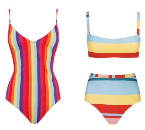 Áo tắm với họa tiết kẻ sọc cầu vồng mang tới nét trẻ trung và phá cách