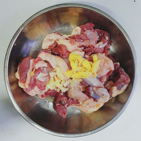 Tiếp theo, ướp vịt cùng tỏi băm, 4 muỗng chao nhỏ, nước mắm, ớt, tiêu, muối, đường, bột ngọt trong 45 phút cho thấm đều gia vị.