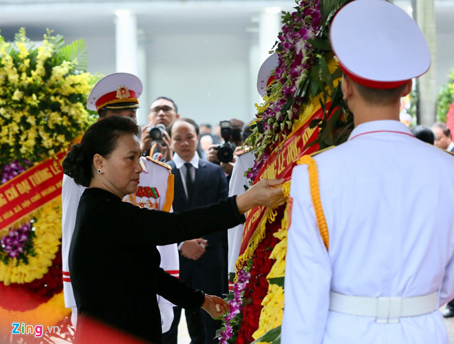Sau đoàn viếng của Chính phủ, đoàn Chủ tịch nước do Phó chủ tịch nước Đặng Thị Ngọc Thịnh làm Trưởng đoàn vào viếng. Đi cùng đoàn c̣n có nguyên Chủ tịch nước Trương Tấn Sang, nguyên Phó chủ tịch nước Nguyễn Thị Doan cùng nhiều cựu lănh đạo Nhà nước khác. Chia sẻ với nỗi đau mất mát cùng gia quyến, các lănh đạo, nguyên lănh đạo Nhà nước tới bàn ghi sổ tang, lưu lại những ḍng tiễn biệt.