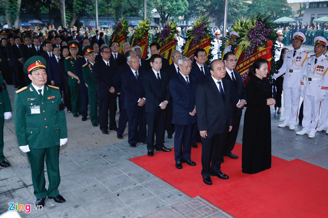 Sau thông báo của Trưởng ban lễ tang, Đoàn Ban chấp hành Trung ương Đảng do Thủ tướng Nguyễn Xuân Phúc làm trưởng đoàn vào viếng.