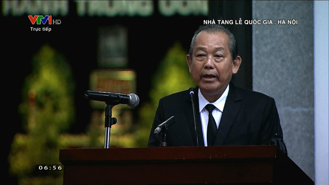 Phó thủ tướng Thường trực Trương Ḥa B́nh - Trưởng ban tổ chức Lễ tang tuyên bố lễ tang. Ông điểm lại tiểu sử của đại tướng Lê Đức Anh.