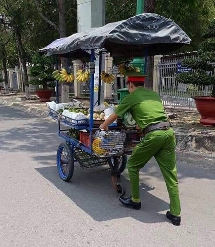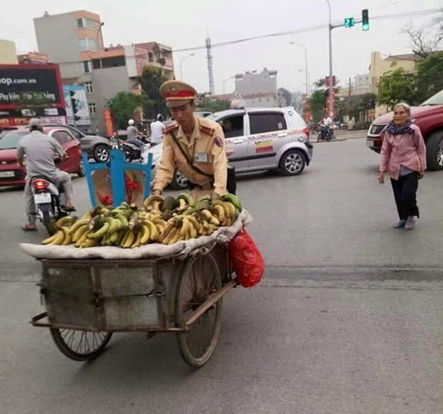 Mọi người cứ chửi côn an là sướng .Chẳng những bán chuối , bán rau kiếm thêm tiền :