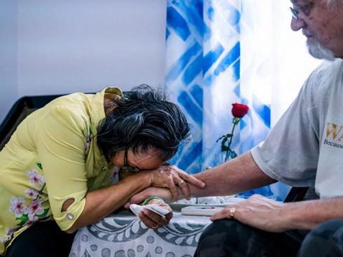 Ông Reischl thăm chồng bà Hạnh khi đó đang điều trị tại bệnh viện – Ảnh: Washington Post