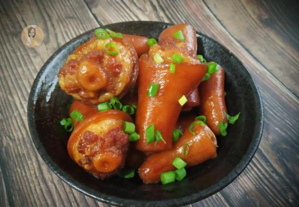 Hết thời gian, cho đuôi lợn ra đĩa, rắc hành lá lên và thưởng thức!