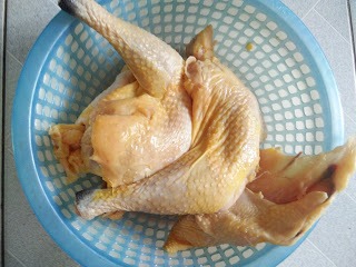 - Gà sau khi đã làm sạch thì đem rửa 1 lần nước muối rồi xả nước lạnh cho sạch, chặt gà từng miếng vừa ăn.