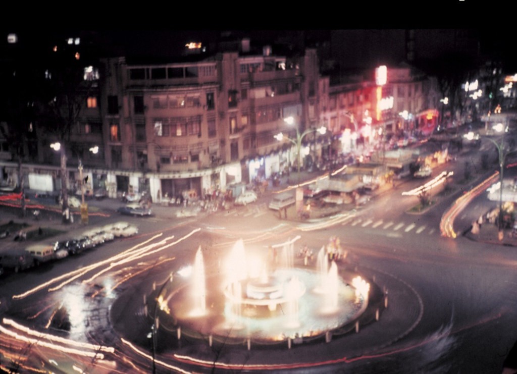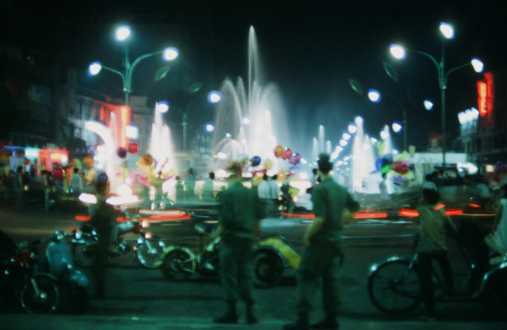 Một buổi tối tại vòng xoay giao lộ Nguyễn Huệ - Lê Lợi, Sài Gòn khoảng cuối thập niên 1960. Ảnh: Craig Ailles.