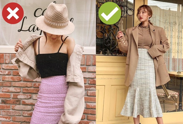 Hãy cân nhắc thật kỹ đến độ dài của chân váy khi lên đồ để chắc chắn, set trang phục của bạn đủ kín đáo, thanh lịch và sẽ không xảy ra tình huống hớ hênh.
