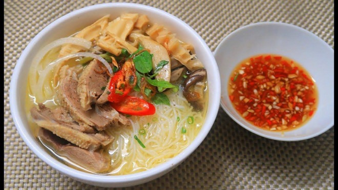 Vịt nấu măng tươi hợp nhất là ăn cùng bún