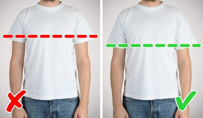 Khi chọn áo phông, nhiều người chỉ quan tâm mình mặc nó vừa vặn hay không, hoàn toàn quên chú ý đến tay áo. Tuy nhiên, thực tế cho thấy, chọn tay áo che khoảng nửa cánh tay, tính từ khuỷu tay trở lên sẽ giúp bạn đẹp hơn.
