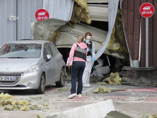 Vụ nổ xảy ra bên ngoài một siêu thị tại khu vực Mezieres-sur-Seine khiến các mảnh vỡ bắn xa đến 20 mét.