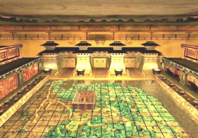 Minh họa dòng sông thủy ngân bao quanh quan tài chưa thi hài Tần Thủy Hoàng.