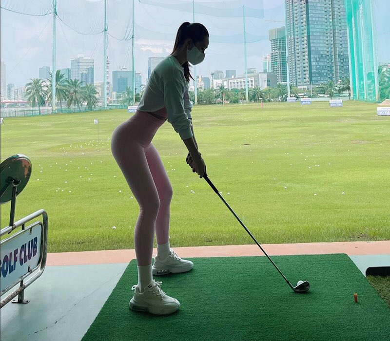 Mới đây, Khánh My đã khoe hình ảnh mặc đồ tập đi chơi golf. Với bộ đồ màu hồng nude, tiệp màu da đã làm tốt nhiệm vụ khoe vóc dáng chuẩn mẫu của cô. Nhưng với góc chụp phía sau, cộng thêm với hiệu ứng ánh sáng khiến người nhìn nhầm như cô không mặc gì. Nhiều người tỏ ra tiếc nuối bởi với một người yêu thể thao và mê đồ tập như Khánh My mà cũng mắc những lỗi thời trang đáng tiếc.