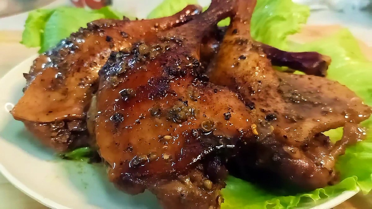 Vậy là món thịt vịt ướp tiêu nướng bằng lò vi sóng đã hoàn thành rồi. Cho đùi gà ra đĩa rồi trang trí thêm xà lách tươi xanh để thưởng thức thôi nào!