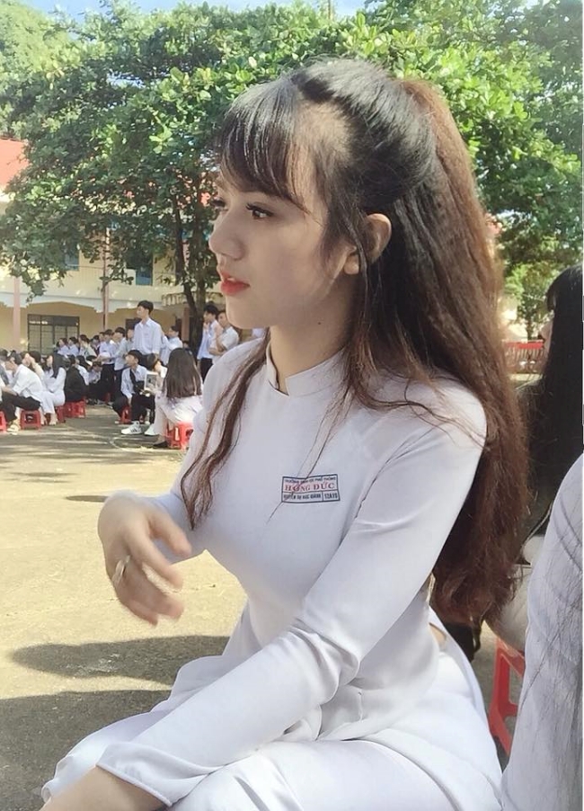 Khi mặc áo dài nữ sinh, vẻ trong trẻo của Thảo Huyền khiến không ít người xiêu lòng.
