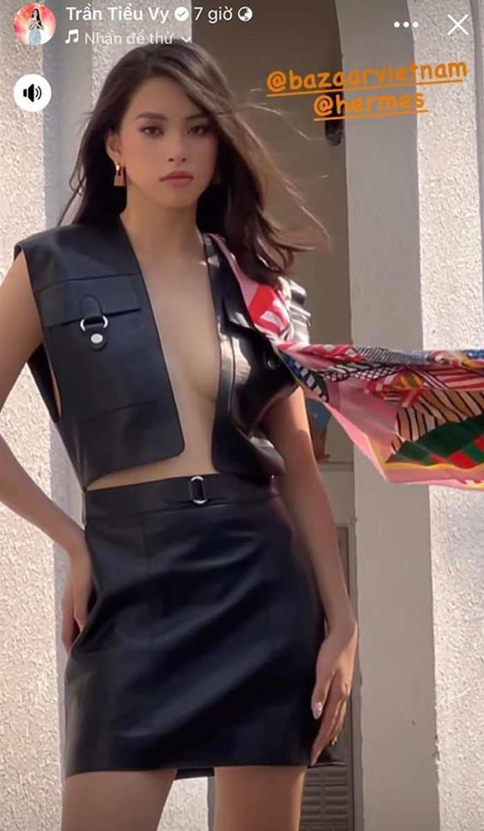 Mới đây, Tiểu Vy thu hút sự chú ý khi đăng tải hình ảnh hậu trường chụp ảnh cho tạp chí với trang phục táo bạo, tôn vòng 1 "nửa kín nửa hở" cùng thần thái quyến rũ, tự tin trước ống kính. Cô khiến người nhìn giật mình vì cô diện chiếc áo da không kéo khóa, chỉ cần một chút bất cẩn là có thể gặp sự cố. Trước đó, người đẹp từng mặc vest không nội y, với phần xẻ ngực sâu hun hút nhưng vẫn có độ hở vừa phải.