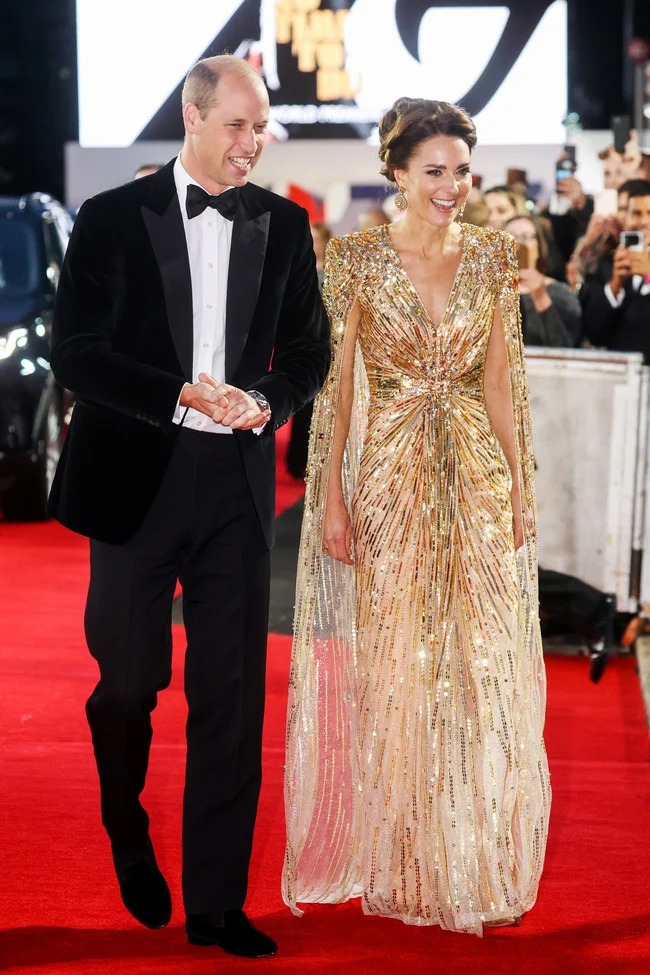 Kate Middleton thực sự chiếm trọn spotlight thảm đỏ khi diện đầm ánh kim của Jenny Packham. Chọn kiểu tóc búi cổ điển, sang trọng giúp nâng tầm đẳng cấp của cả bộ trang phục. Ngay cả cách nhấn nhá trang sức cũng thể hiện sự tinh tế.
