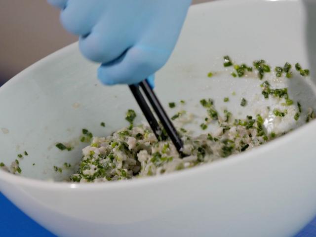 Hẹ rửa sạch, cắt vụn, trộn với gia vị.