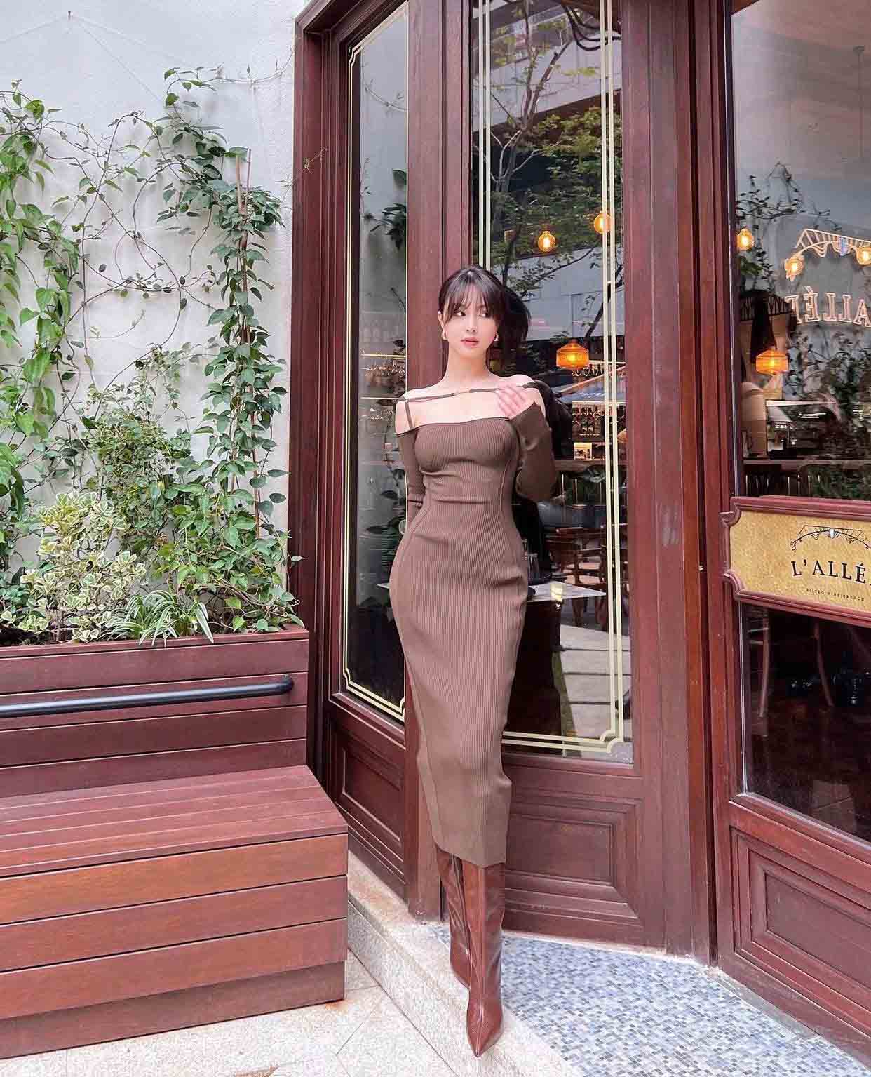 Mới đây, một hot mom Trung Quốc tên là Crissie Lee thu hút sự chú ý khi đi uống cafe nhờ diện váy bodycon 2 dây bó sát cơ thể, cùng với phần cổ chữ V khoét sâu hun hút, tôn vòng 1 đầy đặn. Chất liệu len dày dặn của bộ váy là một điểm cộng, không chỉ giúp cô khoe khéo vóc dáng quyến rũ mà còn tạo hiệu ứng thị giác khá "bắt mắt" khi nhìn từ xa. Sự tinh tế trong việc kết hợp váy màu nude với phụ kiện giày màu xanh của người đẹp cũng nhận được nhiều lời khen vì tạo nên một tổng thể hài hòa mà không hề nhàm chán.