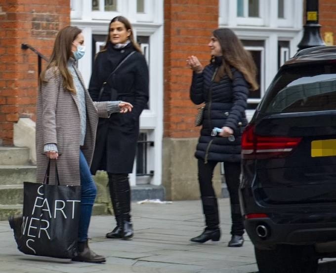 Hôm 4/2, nữ Công tước xứ Cambridge được nhìn thấy xách chiếc túi mua sắm lớn màu đen rời cửa hàng Peter Jones ở quảng trường Sloane, thuộc quận Chelsea. Cô sau đó chui vào ghế sau chiếc BMW đang đỗ sẵn ở lối sau cửa hàng rồi rời đi.