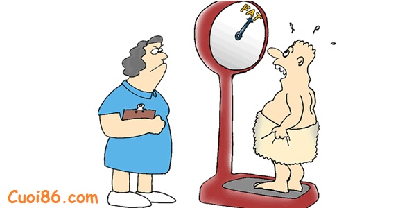 Mary đi chợ về thì phát hiện chồng mình đang đứng trên một cái cân và dùng cố sức hóp bụng lại.