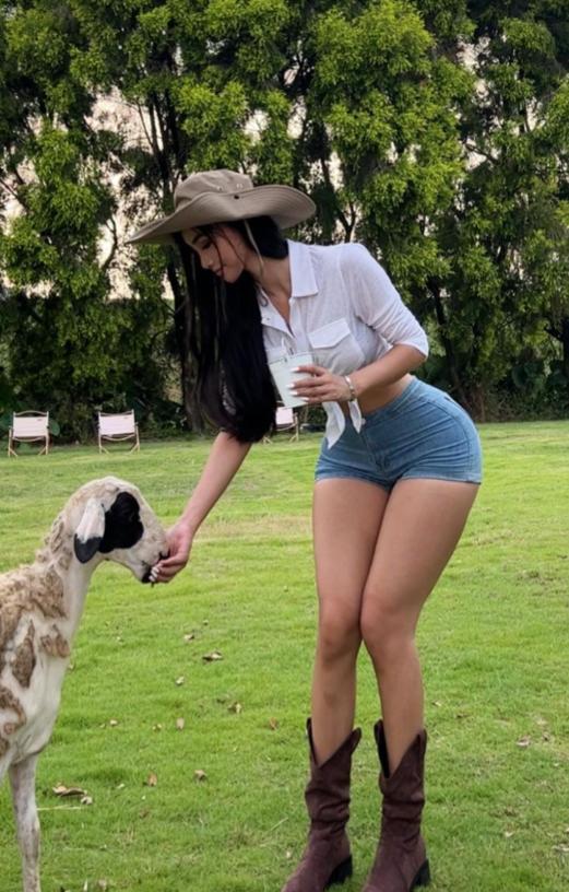 Những chiếc quần short dáng ôm như thế này thường được Carina kết hợp với croptop và đi boots đùi để cân bằng khoảng hở.