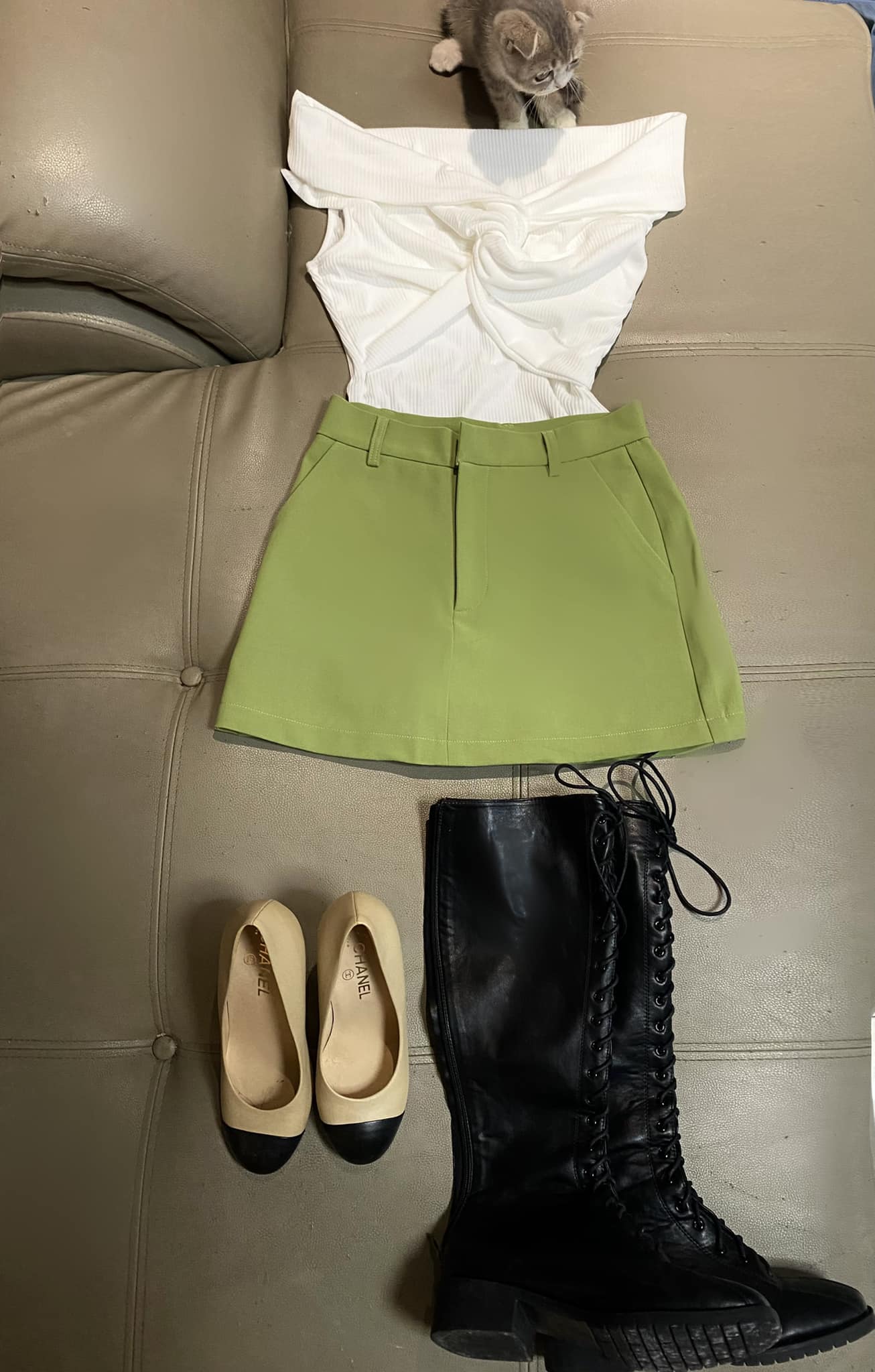 Để có sự chuẩn bị tốt nhất về ngoại hình, Elly Trần đã nhờ cộng đồng mạng chọn phụ kiện giúp cô. Theo lời động viên của người hâm mộ, mẹ hai con đã chọn đi boot dài với set áo thun, chân váy để có tổng thể ấn tượng.