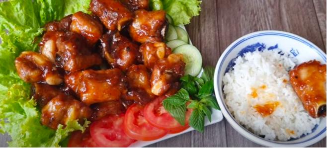 Khi nước sốt sánh lại, bám đều miếng sườn là được.
