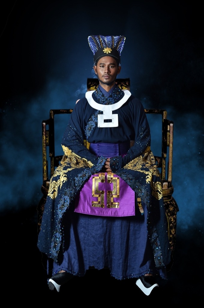 Sáng 14/2, nhà thiết kế Sĩ Hoàng - tác giả của bộ trang phục - cho biết thiết kế vốn là phục trang của nhân vật vua Lý Nhân Tông, trong vở Khóc giữa trời xanh (tác giả Lê Chí Trung, đạo diễn Phùng Nguyên) - cảm tác về cuộc đời vị trung thần Thái sư Lê Văn Thịnh. Vở diễn từng đạt Huy chương Vàng tại Liên hoan kịch nói Toàn quốc 2021.