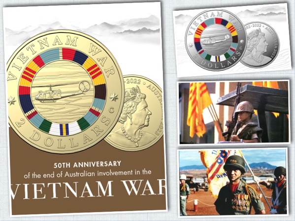 Sở Đúc tiền Úc Đại Lợi (Royal Australian Mint - gọi tắt là RAM) chỉ vừa phát hành hai loại coin $2, với mục đích đánh dấu 50 năm kể từ khi quân đội Úc rời khỏi chiến trường Nam Việt Nam, kết thúc nhiệm vụ của phe đồng minh trong cuộc chiến bảo vệ tự do.