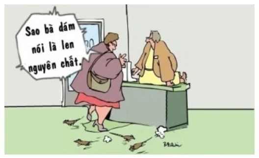 - Hôm qua tôi mua ở đây một cái chăn, bà nói là làm từ len nguyên chất. Về đến nhà tôi mới phát hiện bà đã lừa đảo.