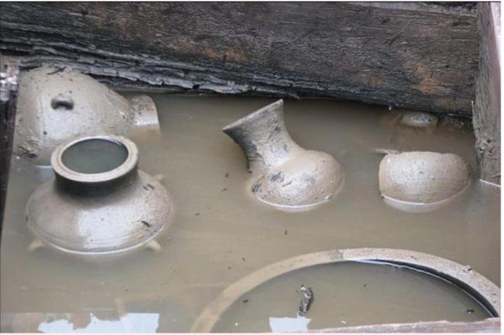 Trong mộ cổ, các nhà khảo cổ tìm thấy nhiều món đồ gốm. (Ảnh: Kknews)