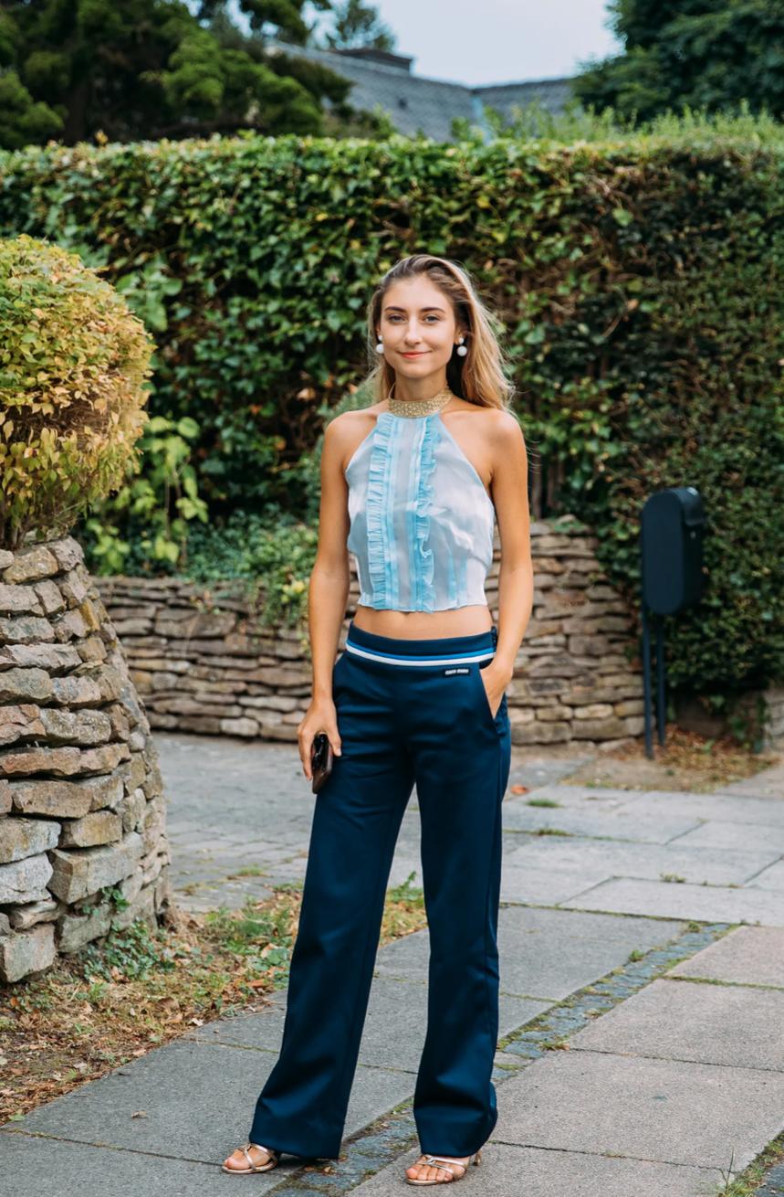 Không giống như áo crop top khoe bụng, áo cổ yếm được các chuyên gia đánh giá là một bước tiến trong các trang phục thanh lịch mà nhiều người hay mặc định chỉ có quần âu, áo sơ mi.