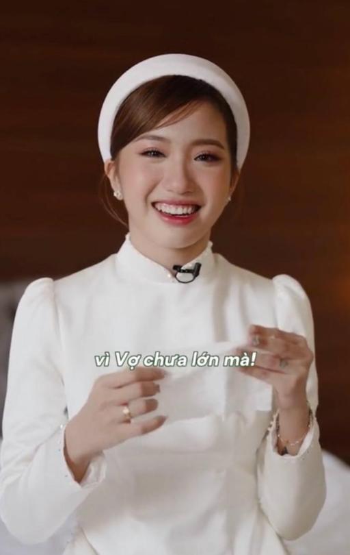 Ngoài ra, Khánh Huyền cũng thừa nhận bản thân từng làm ông xã buồn và suy nghĩ nhiều, thậm chí khiến anh phải khóc. Tuy nhiên, cô vẫn luôn mong "nửa kia" nhẹ nhàng hơn với mình. "Em mong chồng xem vợ như đứa trẻ con thôi, vì vợ chưa lớn mà".