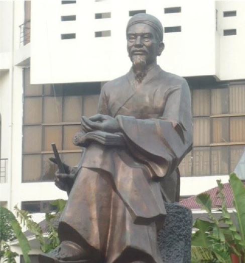 Tượng đài Trạng Trình Nguyễn Bỉnh Khiêm ở khuôn viên Thư viện Khoa học Tổng hợp Thành phố Hải Phòng