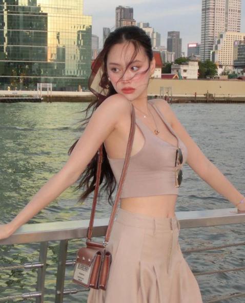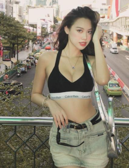 Mới đây, Á hậu Đặng Hoàng Tâm Như gây chú ý với loạt ảnh khoe dáng trong chuyến du lịch ở Băng Cốc, Thái Lan. Cô nàng lựa chọn áo bra dáng thể thao đến từ thương hiệu Calvin Klein cùng chân váy ngắn denim. Để tổng thể hoàn chỉnh, cô mix cùng túi kẹp nách ánh bạc làm điểm nhấn, phối với mắt kính đen và sneakers đen trắng.