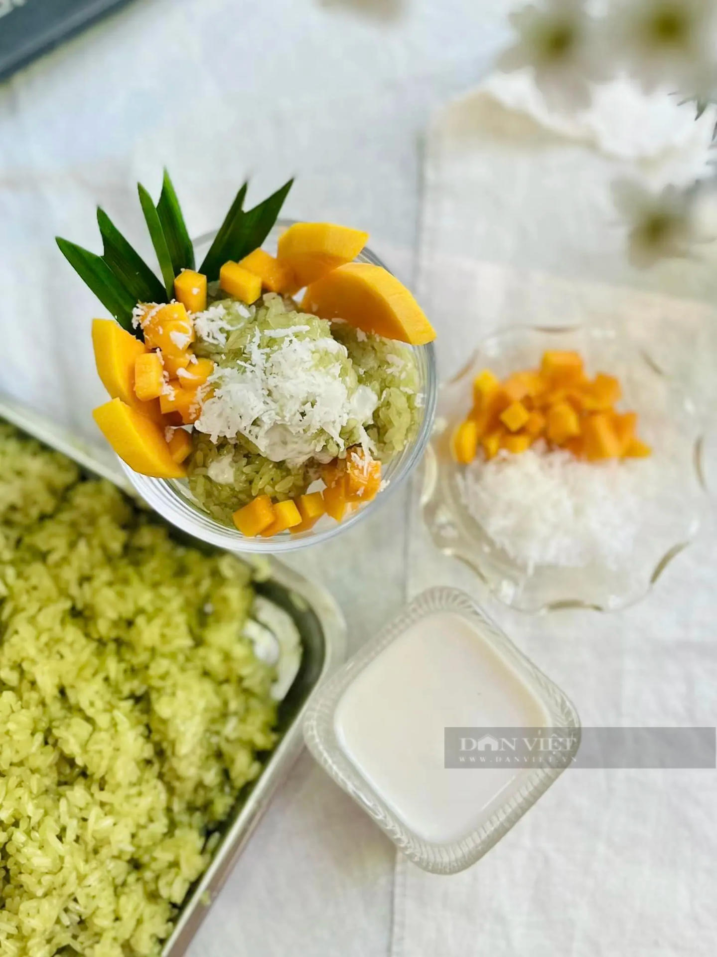 Dân Việt giới thiệu cách nấu món xôi xoài lá dứa cốt dừa với thành phẩm vừa béo vừa đậm đà mà lại thơm lừng mùi lá dứa như sau: